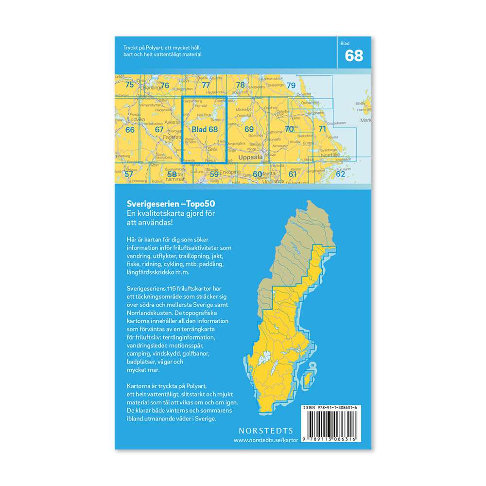 Friluftskarta 68 Sala Sverigeserien 1:50 000 Kartan täcker även Färnebofjärden, Krylbo, Västerfjärnebo, Tärnsjö, Heby, Ransta och Fjärdhundra.