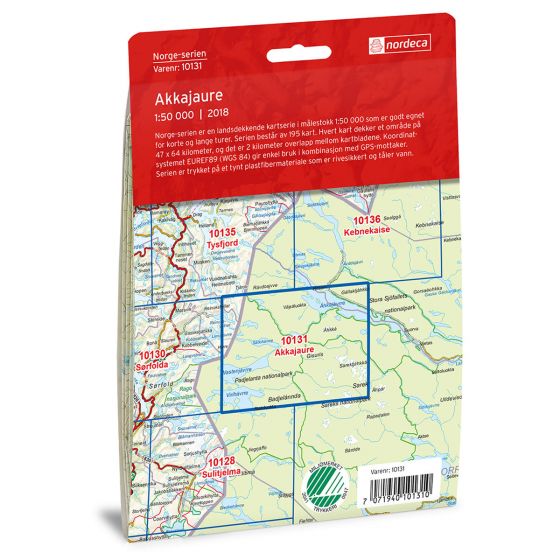 Norges kartserie Akkajaure i skala 1:50 000 är tryckt på hållbart, återvinningsbart och vattentätt plastfibermaterial. Kartan är lämplig att använda vid vandring, fiske och jakt och används även av räddningsteam. Norges kartserie täcker hela landet och är därför även populär att använda på längre vandringar. Kartorna överlappar varandra, vilket gör det enkelt att navigera mellan kartorna.
