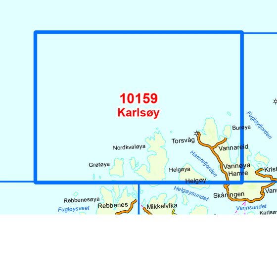 Norges kartserie Karlsøy i skala 1:50 000 är tryckt på hållbart, återvinningsbart och vattentätt plastfibermaterial. Kartan är lämplig att använda vid vandring, fiske och jakt och används även av räddningsteam. Norges kartserie täcker hela landet och är därför även populär att använda på längre vandringar. Kartorna överlappar varandra, vilket gör det enkelt att navigera mellan kartorna.