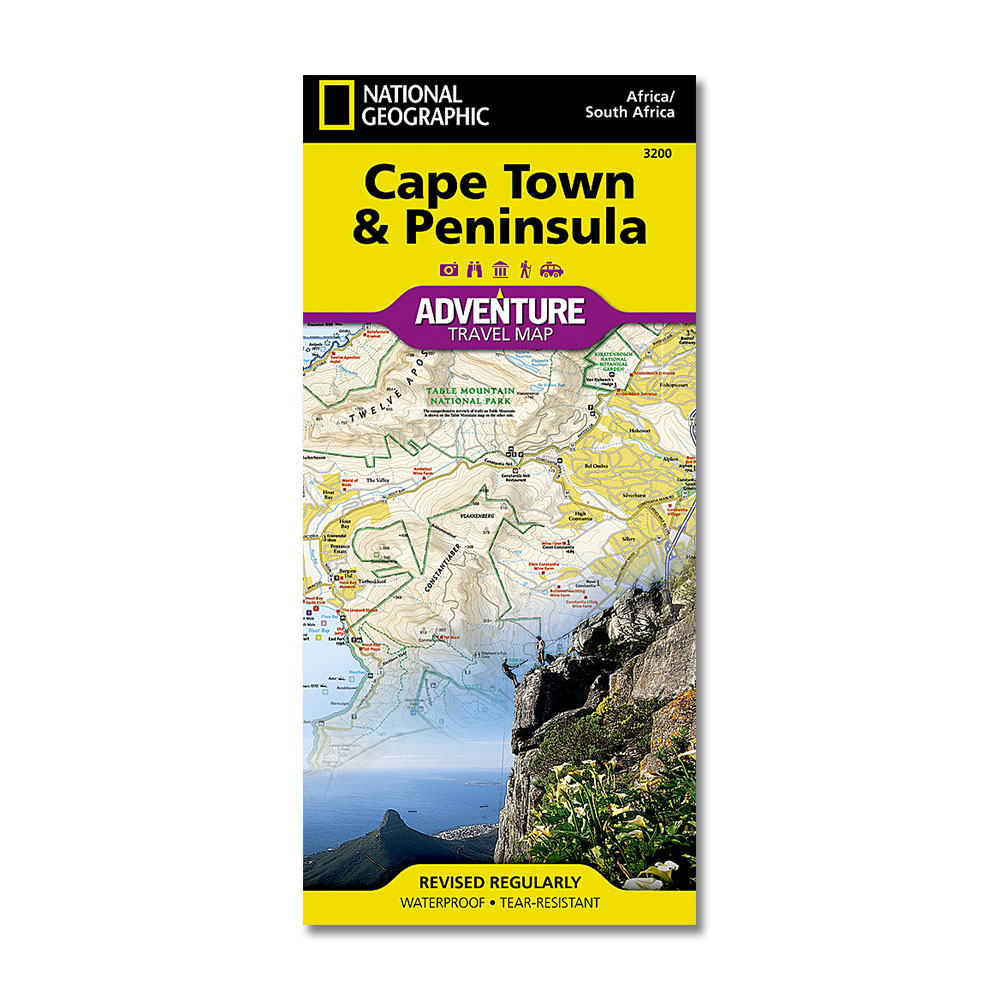Fritidsaktiviteter finns i överflöd på Sydafrikas Kaphalvön. National Geographics Cape Town and Peninsula Adventure Map är ett ovärderligt verktyg för att utforska denna spännande destination. Framsidan av den tryckta kartan täcker både Kapstaden och Taffelberget i två separata kartor. Gatukartan över Kapstaden innehåller en mängd användbara resurser för resenärer från logi, mattjänster och marknader till platser för tillbedjan, ambassader och informationscenter. Rekreationskartan över Taffelberget fokuserar på vandrings-, rid- och mountainbikeleder samt områden med skärmflygning och klättring. Parkeringsplatser, restauranger och picknickplatser är också tydligt angivna.