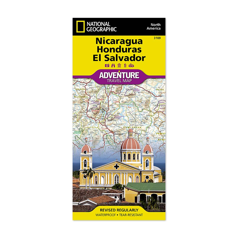 Utforska hjärtat av Centralamerika med National Geographics äventyrskarta över Nicaragua, Honduras och El Salvador. Hundratals sevärdheter lyfts fram, inklusive nationalparker och reservat, världsarv, arkeologiska platser, kyrkor, skeppsvrak, slott och mer. Den här kartan inkluderar platserna för tusentals städer och byar tillsammans med ett användarvänligt index, plus ett tydligt markerat vägnät komplett med avstånd och beteckningar för motorvägar, vägar och andra rutter.