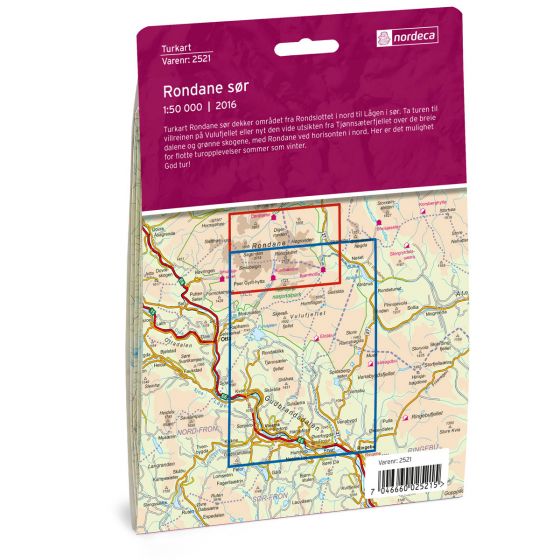 Ledkartan för Rondane södra täcker området från Rondslottet i norr till Lågen i söder. Ta en tur för att se vildrenarna på Vulufjellet, eller njut av den vidsträckta utsikten från Tjønnsæterfjellet över de breda dalarna och gröna skogarna, med Rondane vid horisonten i norr. Området har fina vandringsmöjligheter både sommar och vinter.