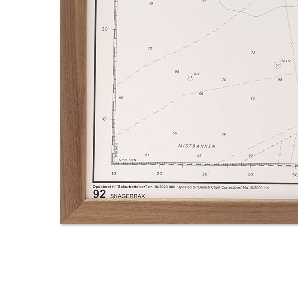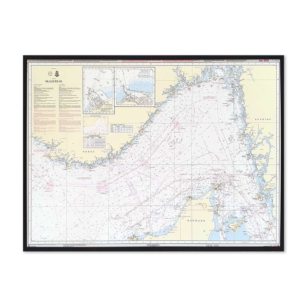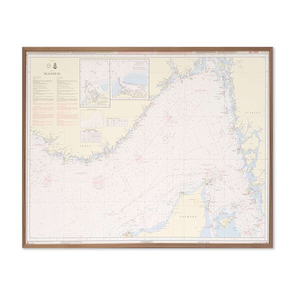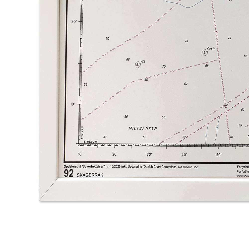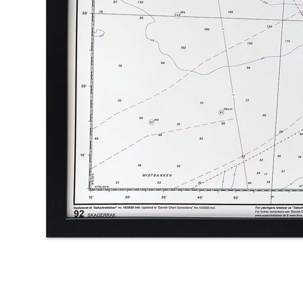 Detaljeret søkort over 92 Skagerrak, hvor du kan sætte nåle på de steder, du har besøgt eller ønsker at besøge. Indrammet søkort fra Geodatastyrelsen til at hænge på væggen, Et flot indrammet billede, der aldrig bliver umoderne.