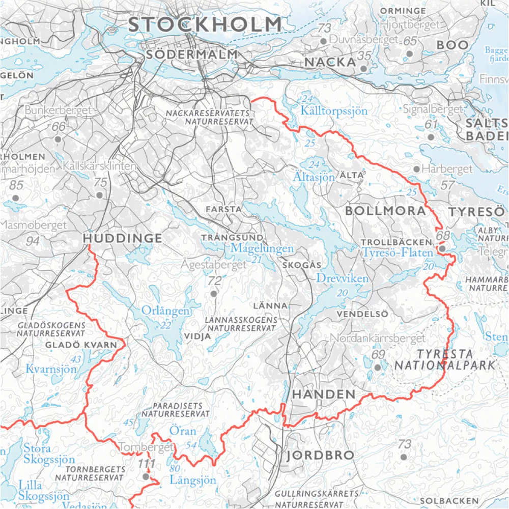 Detta är Dapa Maps detaljerade karta över Sörmlandsleden för väggen.