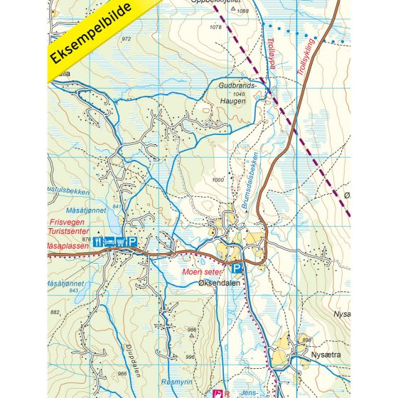 Map with Norwegian Trekking Association information about trails and cabins.